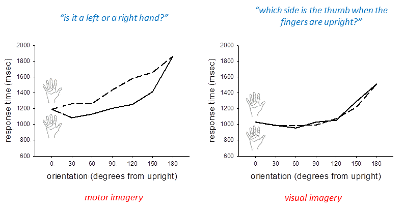 Parsons, L.M. (1994). Temporal and kinematic properties of motor behavior reflected in mentally simulated action. Journal of Experimental Psychology: Human Perception and Performance, 20(4), 709-730.